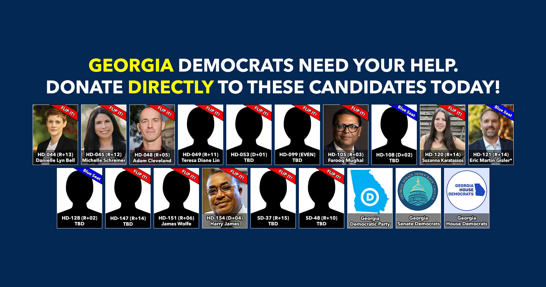 Donate to Democratic candidates running in competitive districts to keep & flip as many seats blue as possible!