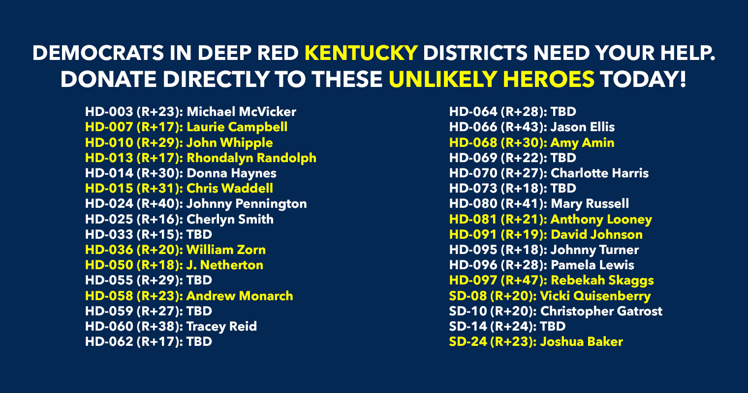 Donate to Democrats running in deep red districts to boost turnout & force Republicans to defend their turf!