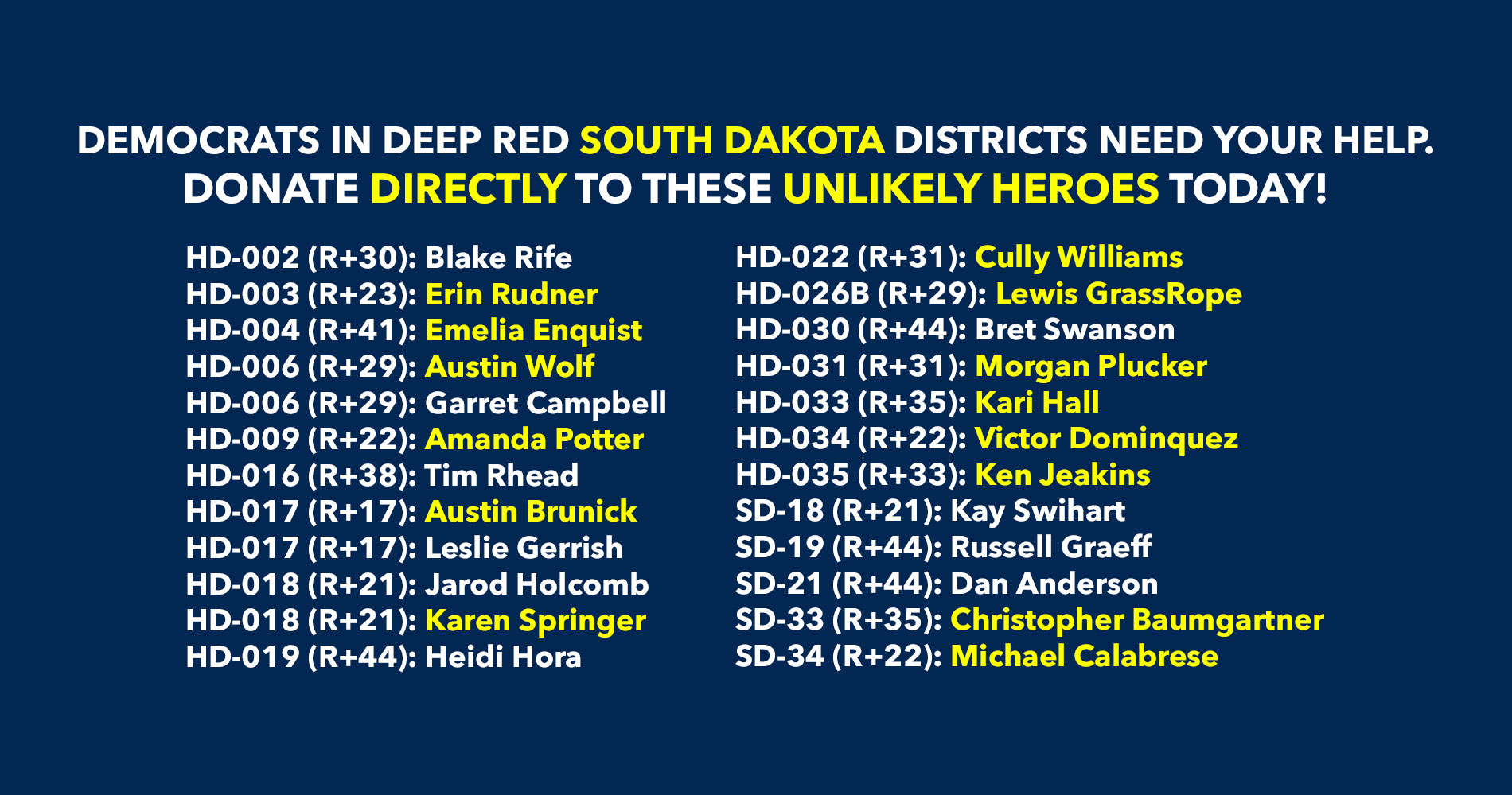 Donate to Democratic candidates running in competitive districts to keep & flip as many seats blue as possible!