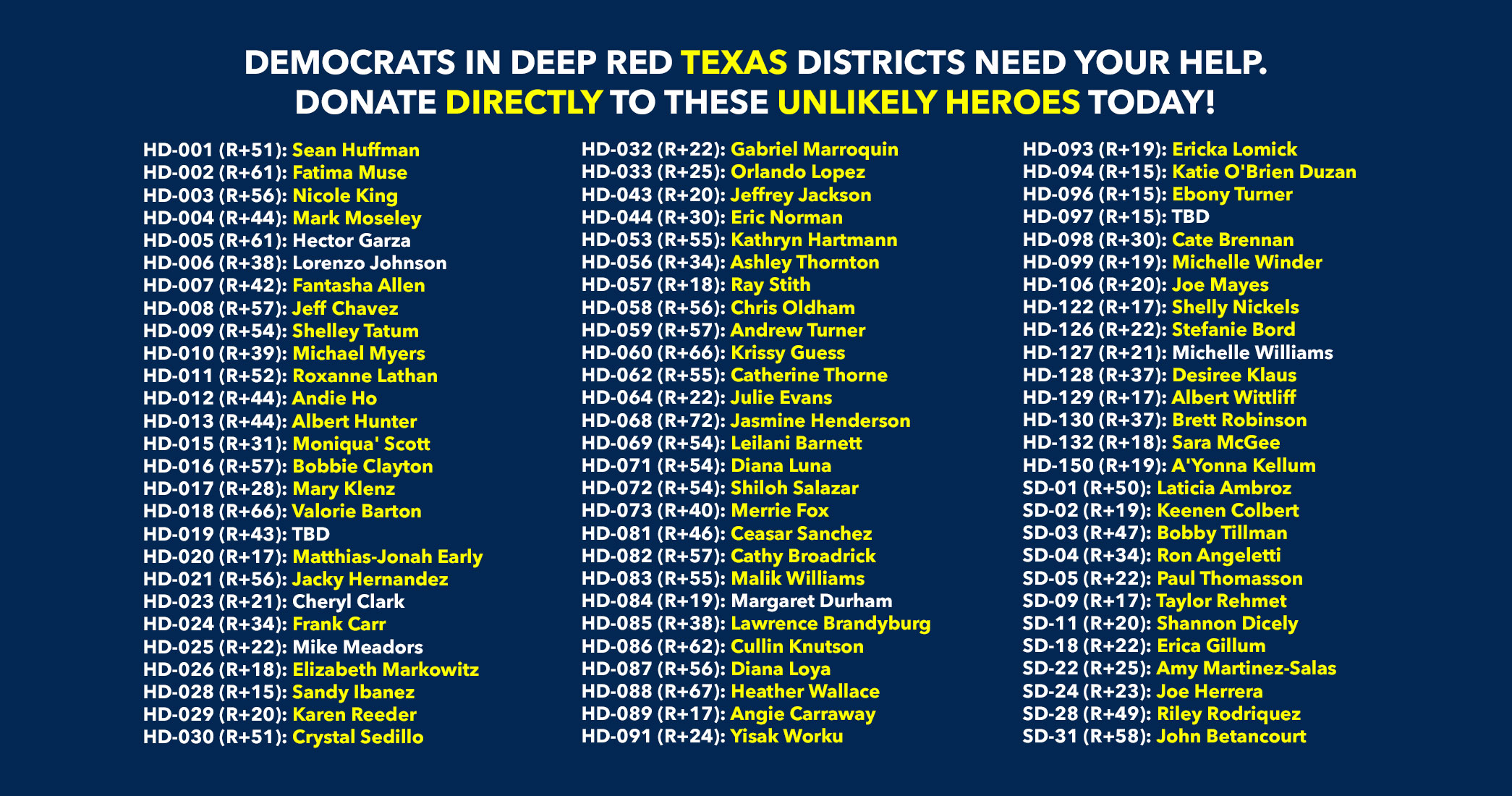 Donate to Democrats running in deep red districts to boost turnout & force Republicans to defend their turf!