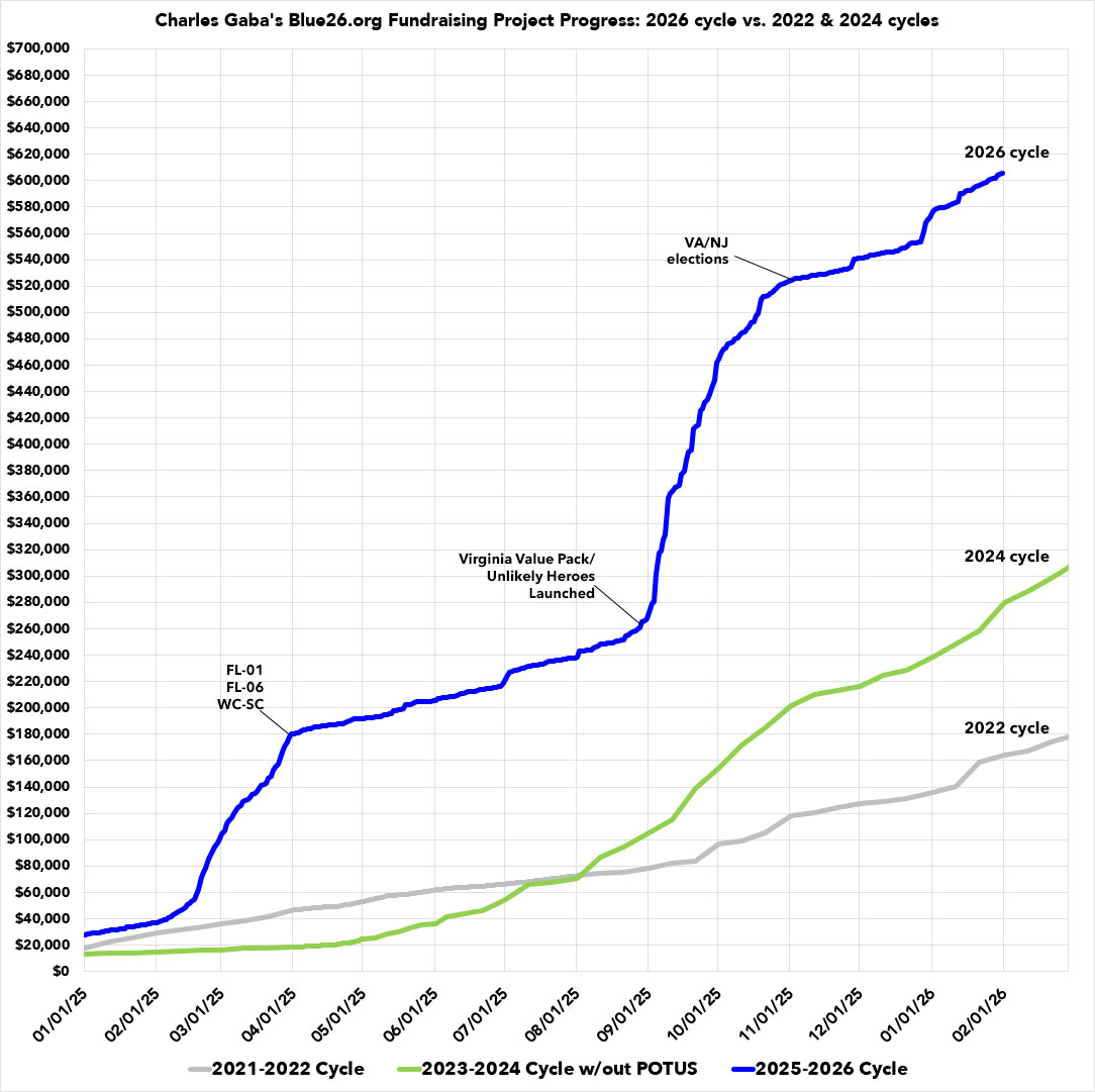 Blue26.org January 2026 Fundraising update: $33.4K for the month, $605K for the cycle